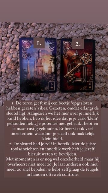 Een Inner Child legging houdt in dat ik 'communiceer' met jouw innerlijk kind. Het innerlijk kind laat situaties zien die veel invloed hebben gehad en/of brengen iets onder je aandacht waar je meer op mag letten. Dit is een mini-legging met Lenormand kaarten en de uitleg zal ik typen bij de kaarten. Zie voorbeeld.